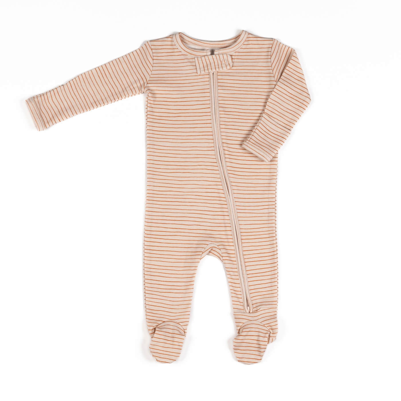 Fun hand-illustrated coral stripes on a light coral background adorn these Footed...