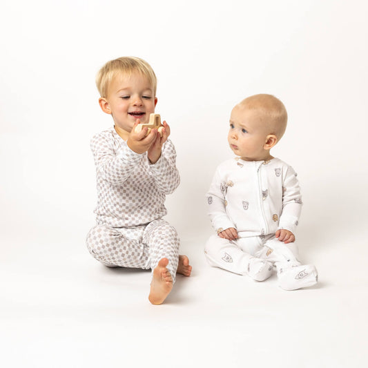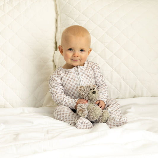 Neutral Checks Footed Sleeper